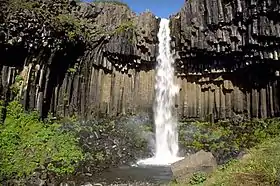 Svartifoss (cascada Negra) es una cascada en el Parque nacional Skaftafell en Islandia y una de sus atracciones más populares. Está rodeada por columnas basálticas negras, de origen volcánico, que le dan su nombre. Las columnas hexagonales fueron formadas por un proceso de cristalización dentro de un flujo de lava al enfriarse de manera extremadamente lenta. Formaciones similares a esta se encuentran en la Calzada del Gigante en Irlanda del Norte y en la isla de Staffa en Escocia.