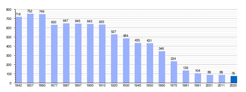 Tras la caída del Antiguo Régimen quedó constituido en ayuntamiento constitucional. A mediados de siglo Pascual Madoz, en su Diccionario geográfico-estadístico-histórico de España y sus posesiones de Ultramar (1845-1850), lo sitúa en la provincia y diócesis de Palencia, partido judicial de Astudillo y audiencia territorial y capitanía general de Valladolid. Al igual que Miñano, describe su situación en un promontorio, en la falda de unos cerros, y caracteriza su clima como poco frío y bien ventilado, pero propenso a calenturas, reumas y fiebres gástricas. Contaba con 200 casas, hospital, posada, escuela de primeras letras, varias fuentes, dos parroquias y una ermita. Su población era de 718 almas (habitantes) y producía trigo, cebada, centeno, patatas, legumbres y vino, además del ganado lanar. Junto con la agricultura, otras actividades económicas eran la desempeñada por varios arrieros y la elaboración de calcetas.[42] Durante el resto del siglo XIX su población permaneció estable, pero desde la segunda década del siglo XX la localidad experimenta un descenso demográfico, siendo especialmente intenso entre 1950 y 1981, cuando perdió casi 300 habitantes debido al éxodo rural.[43]
