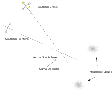 Si no se cuenta con una brújula, se pueden hallar los puntos cardinales guiándose por las estrellas. En el hemisferio norte, la estrella polar indica el norte geográfico y la Cruz del sur hace lo propio en el hemisferio sur.[20] De día, se pueden ubicar los puntos cardinales utilizando un reloj analógico. Alineando la manecilla horaria con el sol y luego trazando la bisectriz entre esta y las 12, se obtiene la dirección del sur.[1][20] Además, es aconsejable seguir corriente abajo el curso de los arroyos o ríos, ya que así se aumentan las posibilidades de hallar una zona habitada.[19]