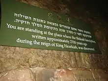 La Inscripción de Siloé informa acerca de los trabajos poco antes de la ruptura del túnel y reviste gran importancia arqueológica. Fue encontrada en el año 1880 en las cercanías de la entrada sur del túnel. Después de que en tiempos del Imperio otomano se intentase robarla, ocasión en la que el ladrón logró ser apresado, se la llevó al Museo arqueológico de Estambul, donde se encuentra actualmente.
