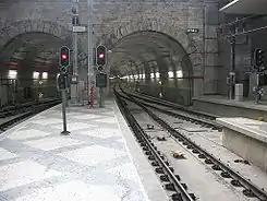 Los estudios geológicos para el túnel fueron efectuados por el profesor Paul Choffat, y, en el mes de abril de 1889, el túnel ya se encontraba completamente perforado, y la Estación Central ya estaba construida; la primera composición atravesó el túnel en mayo de 1889.[3] La ceremonia de inauguración tuvo lugar en mayo de 1891, y, en junio siguiente, este tramo entró en servicio.[3]