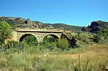 Detalle del puente que salva el barranco del Rayuelo en la N-330a en Casas Bajas, antes de entrar en el túnel 1 (de Arriba), 2018.