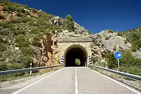 Entrada al Rincón de Ademuz por el túnel de Abajo (túnel 2) de Casas Bajas, en la N-330a (2018).