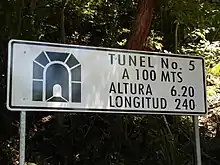 322 m (túnel 1) 577 m (túnel 2) 86 m (túnel 3) 230 m (túnel 4) 240 m (túnel 5) km | |