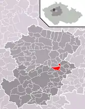 Se encuentra ubicada al noroeste de la región y de Praga, a poca distancia al norte del río Berounka —un afluente izquierdo del río Moldava—, y cerca de la frontera con la región de Ústí nad Labem.[1]