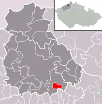 Se encuentra ubicada al noreste de la región, sobre los montes Metálicos, cerca de la orilla de los ríos Bílina y Elba, y del estado alemán de Sajonia.[1]
