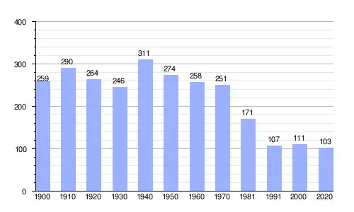 Gráfica de evolución demográfica de Tabera de Abajo entre 1900 y 2020 |