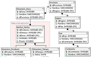 En un almacén de datos o un sistema OLAP, la construcción de Cubos OLAP requiere de una tabla de hechos y varias tablas de dimensiones, estas acompañan a la tabla de hechos y determinan los parámetros (dimensiones) de los que dependen los hechos registrados en la tabla de hechos.