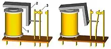 - Comparando Los circuitos de comparación simple tenían dos entradas y una salida que emitía un pulso cada vez que los pulsos llegaban a las entradas en momentos diferentes. Algunas máquinas, por ejemplo, los proveedores, podrían detectar qué número era mayor si no fueran iguales. Una máquina de tabulación puede comparar el número de cuenta en tarjetas sucesivas e imprimir un total cuando aparece un nuevo número de cuenta. Para la función de comparación, IBM implementó lo que ahora se llamaría una puerta XOR usando electroimanes opuestos. Si ninguno de los imanes se activaba o si ambos se activaban al mismo tiempo, la armadura del relé no se movería. Si solo se energizara un imán, la armadura se movería y tocaría uno de los dos contactos colocados a cada lado. Los dos contactos se conectaron internamente y se conectaron a un centro de salida que indicaba una comparación desigual.