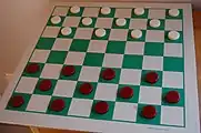 Un tablero de damas es un tipo de tablero cuadrado provisto con un patrón a cuadros, en el que se juega a las damas.[1] Habitualmente consta de 64 cuadrados (8×8) de colores alternativos oscuros y claros, típicamente verde y beige (torneos oficiales), negro y rojo (comercial de consumo) o blanco y negro (diagramas impresos). El tablero de 8×8 se utiliza para jugar muchos otros juegos, incluido el ajedrez, por lo que también se conoce como tablero de ajedrez. Otros tableros rectangulares de casillas cuadradas también se denominan a menudo tableros de damas.