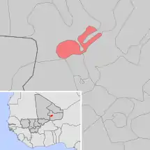 Se encuentra ubicada en el centro-este del país, cerca de la frontera con las regiones de Tombuctú y Kidal.