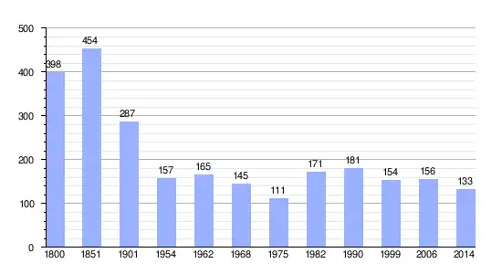 Los datos demográficos contemplados en este gráfico de la comuna de Taillebois[4] se han cogido de 1800 a 1999 de la página francesa EHESS/Cassini, y los demás datos de la página del INSEE.[5]