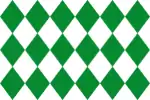 Escudo embaldosado: losanjado de argén y de sinople. Por timbre una corona de barón.[1]
