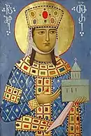 Por voluntad de Dios, Rey de Reyes y Reina de Reinas de los abjasios,[lower-alpha 3] kartvelianos,[lower-alpha 4] arranianos, kajetios y armenios; shirvanshah y shahanshah; autócrata de todo Oriente y Occidente, Gloria del Mundo y Fe; Campeona del Mesías.