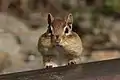 La ardilla listada del Este americano (Tamias striatus) es una especie de roedor de la familia Sciuridae. Es una especie que habita en Norteamérica y es el único miembro vivo de las ardillas del subgénero Tamias, a veces conocido como un género independiente.[1][2] En inglés se lo denomina chipmunk que proviene de la lengua Ottawa ajidamoonh o de la palabra de la Ojibwe ajidamoo, que se traduce literalmente como "quien baja de los árboles de cabeza."[4]