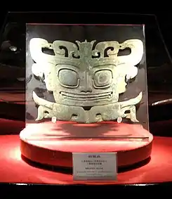 ![]() Máscara de bronce representando un taotie, Museo de Sanxingdui | ||
