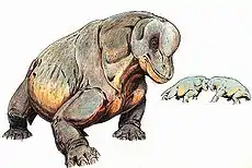 Tapinocephalus es un género extinto de terápsidos dinocéfalos ("reptiles" mamiferoides) que vivió en el Pérmico, hace 270 millones de años en lo que hoy es Sudáfrica.