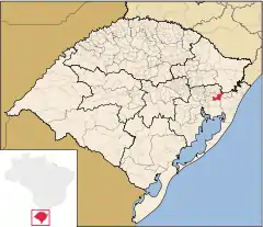 Se localiza a 29º39'02" de latitud sur y 50º46'50" de longitud oeste, a una altitud de 57 metros.