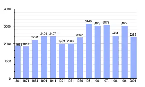 Gráfica de evolución demográfica de Tarsia entre 1861 y 2001 |