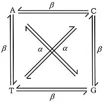 Existe una diferencia sistemática en las tasas de transiciones (Alfa) y transversiones (Beta).