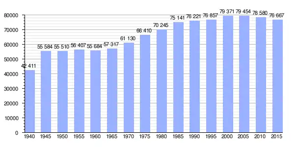 Gráfica de evolución demográfica de Tatebayashi entre 1940 y 2015 |