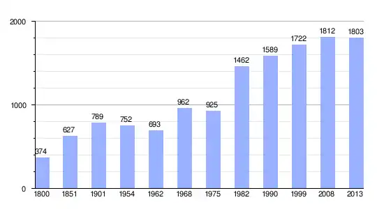 Gráfica de evolución demográfica de Tatinghem entre 1800 y 2013 |