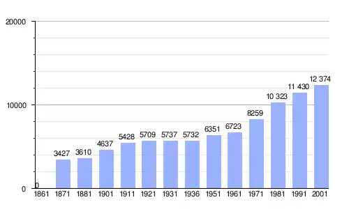 Gráfica de evolución demográfica de Tavagnacco entre 1861 y 2001 |