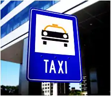 - Un cartel luminoso de color amarillo en el techo con el texto TAXI adelante, y la licencia atrás (de medidas y diseño designados por el gobierno).
