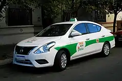- Taxi antiguo de La Plata. Están siendo reemplazados por los nuevos de color blanco con franja verde.[cita requerida]