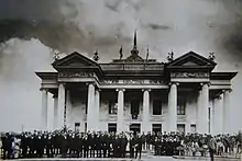 Sin embargo, la obra debió posponerse para el mes de agosto de 1894 debido a problemas en el cumplimiento de dicho contrato, cuya ejecución quedó en manos del arquitecto Enrique Jones. Para el 19 de julio de 1895, día del nacimiento del líder liberal Justo Rufino Barrios, el edificio con una fachada con estilo del Renacimiento francés.[1][3] fue inaugurado así como una compañía de ópera de la capital guatemalteca inició sus labores.