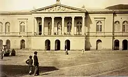 Años más tarde en 1867, la legislatura de la nueva República de Ecuador invita a las municipalidades de todo el país para que construyeran teatros en sus jurisdicciones, es así como en 1877 inician los estudios y concursos de diseño para la construcción del primer teatro de envergadura de la ciudad que además incluyera una plaza abierta en su frente.