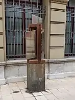 - Escultura en homenaje al teatro asturiano frente al teatro
