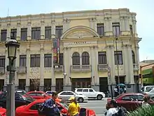 En el edificio destacan las tallas que adornan los frontones curvos de los accesos principales que dan a la Avenida Segunda y la Calle Central: dos musas flotantes se reúnen alrededor de un arpa, en medio de motivos florales barrocos. Figurillas masculinas, que parecen estar en medio de un coloquio, se repiten continuamente en el friso.[cita requerida]