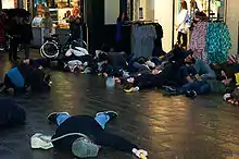"La calle siempre ha sido un escenario, en el que se ha hecho teatro, a veces con fines utilitarios, como en los timos, por ejemplo, con sus tres actores, uno de ellos, el timado, involuntario, o en manifestaciones, como las antinucleares, en las que grupos de manifestantes aparecen muertos en la calle (haciéndose el muerto) por causa de una imaginaria bomba atómica..."Alfonso Sastre.[12]