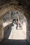 - Detalle del párodos y escalera de acceso al escenario.