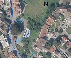 El teatro romano se ubica en el callejón de Thalbach o Thalbachgasse, a unos 30 metros al oeste detrás de la haya cobriza, un monumento natural, en aproximadamente 408 metros sobre el mar.[1] En los tiempos del teatro romano el arroyo de Thal o Thalbach fluyó en el abierto y estaba limitando el área del teatro hasta el demás terreno alrededor. Hoy en día el arroyo discurre en tubos.