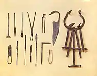 Aunque en el mundo antiguo se conocían distintas prácticas médicas,[39] los romanos crearon o fueron pioneros en el uso de técnicas quirúrgicas y de material médico que todavía se utilizan hoy en día, como los torniquetes hemostáticos o las pinzas quirúrgicas arteriales.[40] El ejército romano introdujo las primeras unidades de cirugía en el campo de batalla,[40] y también se estableció una versión rudimentaria de la cirugía antiséptica años antes de que su uso se generalizara en el siglo XIX.[40]