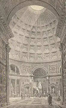 Los romanos diseñaron el Panteón pensando en los conceptos de belleza, simetría y perfección, incorporarando estos conceptos matemáticos en sus proyectos de obras públicas. Por ejemplo, el concepto de números perfectos se utilizó en el diseño del Panteón, al disponer 28 filas de molduras en la cúpula (el número 28 se considera un número perfecto, porque sus factores 1, 2, 4, 7 y 14, suman 28). Este tipo de detalles transmite la sofisticación técnica de los ingenieros romanos.[7]