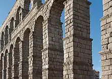 Los romanos construyeron numerosos acueductos para abastecerse de agua. La propia ciudad de Roma se contaba con once acueductos hechos de piedra caliza, que proporcionaban a la ciudad más de 1 millón de metros cúbicos de agua cada día, suficiente para 3,5 millones de personas incluso en los tiempos modernos,[11] y con una longitud combinada de 350 kilómetros (217,5 mi).[12]