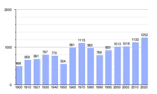 Gráfica de evolución demográfica de Tecoluta 1.ª Sección entre 1900 y 2020 |