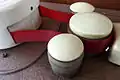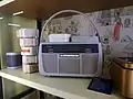- Una radio con reproductor de Tefifón junto a varios cartuchos.