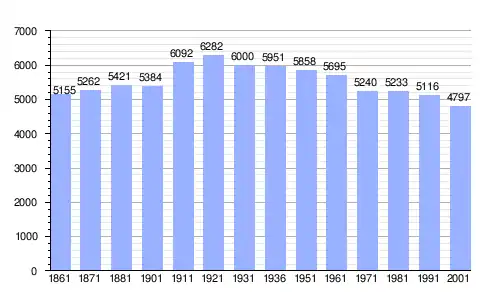 Gráfica de evolución demográfica de Teglio entre 1861 y 2001 |
