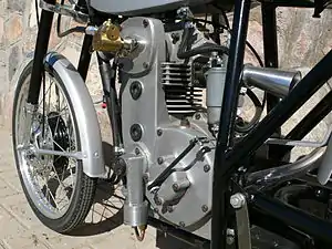 - Lubricación: con aceite en el carter, sistema de salpicado por medio de una aguja en la biela (cucharita), circulación automática en caja de cambios, embrague y distribución, (sin bomba de aceite)