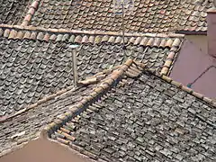 La acepción de a torta y lomo designa el tipo de tejado en el que las piezas se asientan con mortero, rellenando con éste los huecos.[4][5]