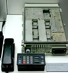 Un teléfono de coche es un dispositivo de teléfono celular específicamente diseñado e instalado en un automóvil. Este servicio originado con el Bell System, fue utilizado por primera vez en St. Louis el 17, junio de 1946. El equipo original pesaba 80 libras (36 kg), y tenía inicialmente sólo 3 canales para todos los usuarios del área metropolitana. Más tarde, fueron añadidas más licencias, llegando a un total de 32 canales en 3 bandas (Ver frecuencias IMTS ). Este servicio estuvo en uso en la década de 1980 en grandes áreas de América del Norte.[1] El 2 de octubre de 1946, equipos de comunicaciones de Motorola fueron la base de las primeras llamadas de la "Illinois Bell Telephone Company", un nuevo servicio de radioteléfono de coche instalado en Chicago.[2][3] Debido al pequeño número de frecuencias de radio disponibles, el servicio alcanzaba rápidamente la saturación.