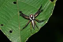 La telamonia de dos rayas (Telamonia dimidiata) es una araña araneomorfa de la familia Salticidae que habita en las selvas tropicales lluviosas de Asia. No segrega ninguna toxina que pueda causar daño significativo al ser humano.