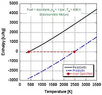 Si se asume que la combustión se ha completado ( y ), se puede calcular la temperatura adiabática de llama, ya sean en condiciones estequiométricas o en una mezcla pobre (exceso de aire). Esto se debe a que hay suficientes variables y ecuaciones molares para equilibrar los lados izquierdo y derecho,