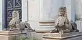 Frontón. Puerta principal. Columna de fachada Esfinges. Detalle de una esfinge.