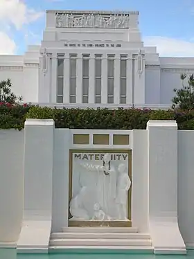 ![]() Fachada del templo de la ciudad de Laie, ubicado en la isla de Oahu la isla más poblada de Hawái.[1] | ||