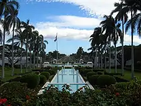 Rodeado por una serie de piscinas reflectantes se encuentra una fuente en honor a la maternidad, igualmente diseñado por los hermanos Fairbanks.[24] Este relieve honra la maternidad hawaiana y se ve representada a una madre hawaiana sosteniendo una concha de almeja gigante mientras vierte agua sobre sus hijos.[25]